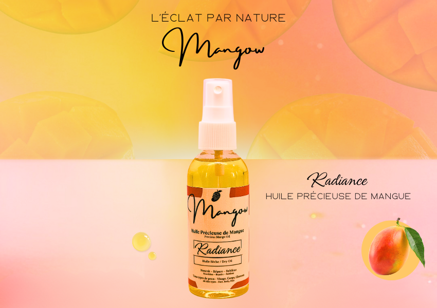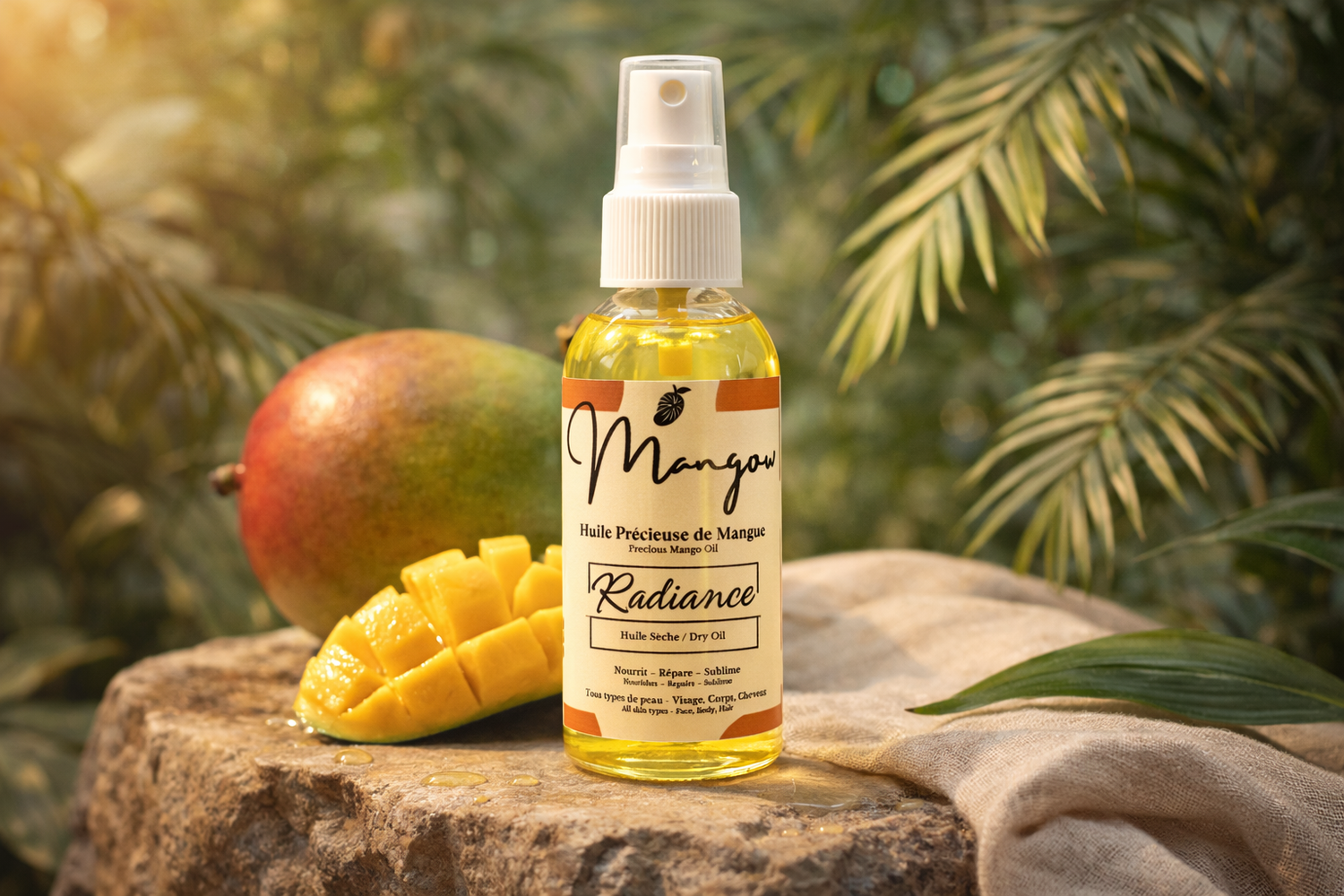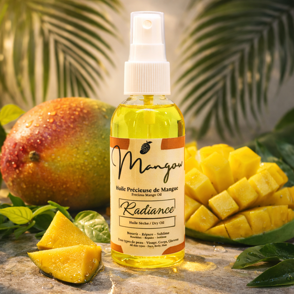 Un vrai coup de cœur 💛 ! L’huile Radiance de Mangow est devenue un indispensable dans ma routine. Elle a une texture ultra légère, ne laisse aucun film gras, et son parfum naturel de mangue est juste incroyable! doux, fruité, super agréable à porter au quotidien.